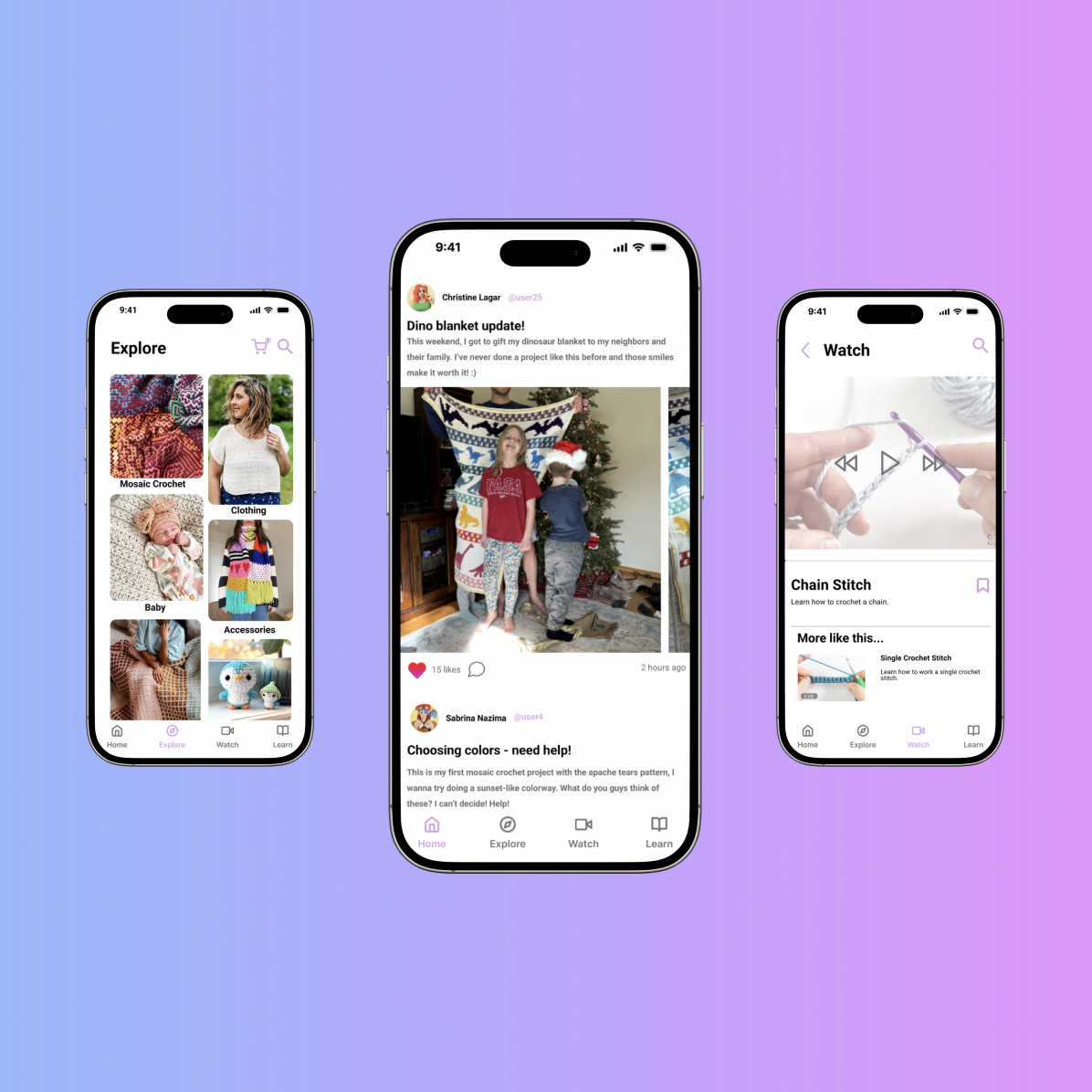 .Conducted full-cycle research and design to build a beginner-friendly crochet app, strategically implementing UX strategies that significantly reduced friction for new learners.
