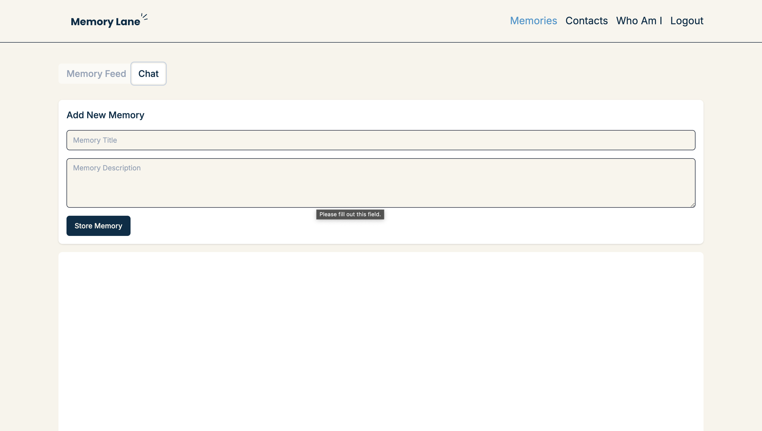 The chat gives tailored responses to the user's past interactions and memory content, creating a richer, more interconnected personal history. This tool provides a way to capture and cherish memories with loved ones, offering a lasting connection even as cognitive abilities diminish.