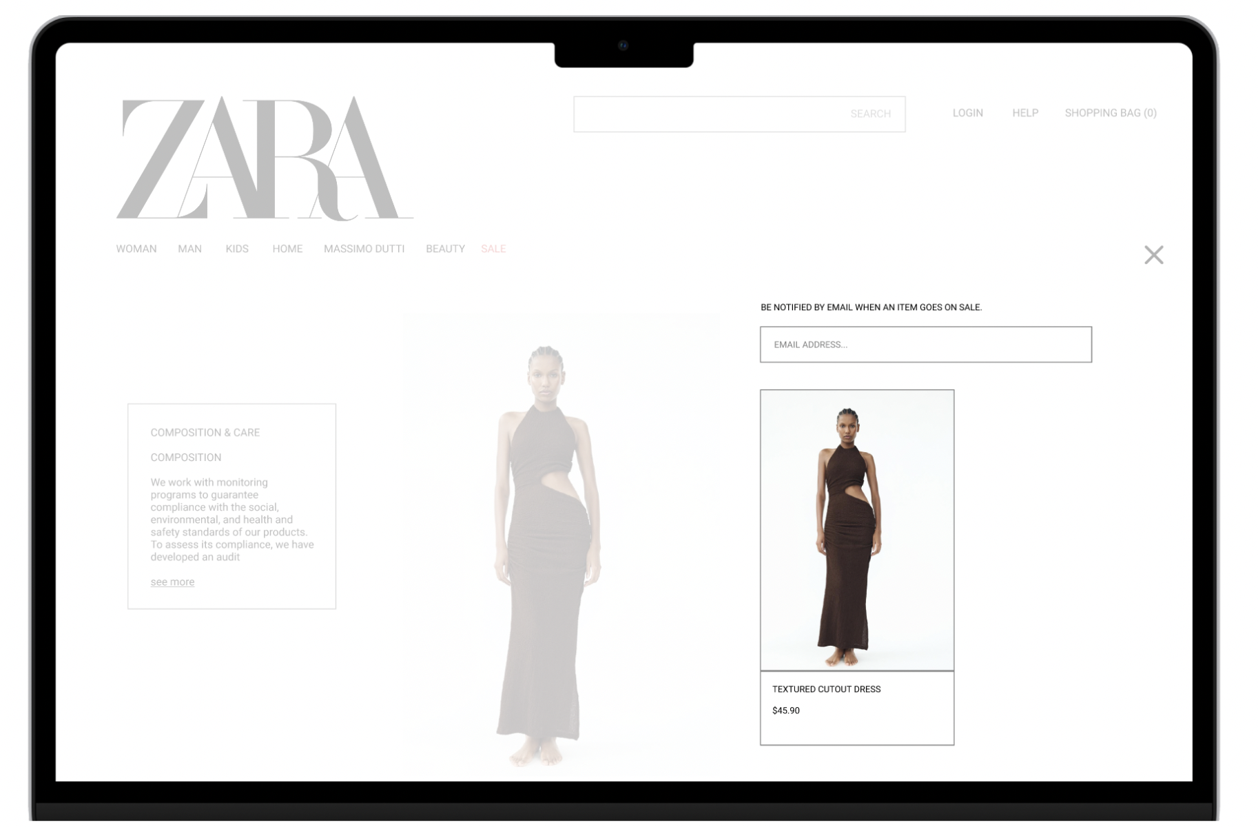 Increase accessibility of sales to create a streamlined user experience, while keeping the high-end and stylish aesthetics associated with Zara’s brand.